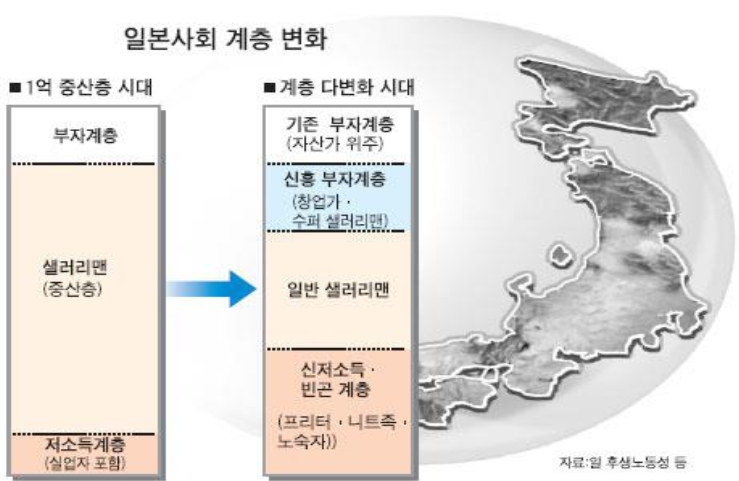 - 1960년대 초반 - 전체의 90% 이상 ‘中流’ 이른바 1억 중류사회